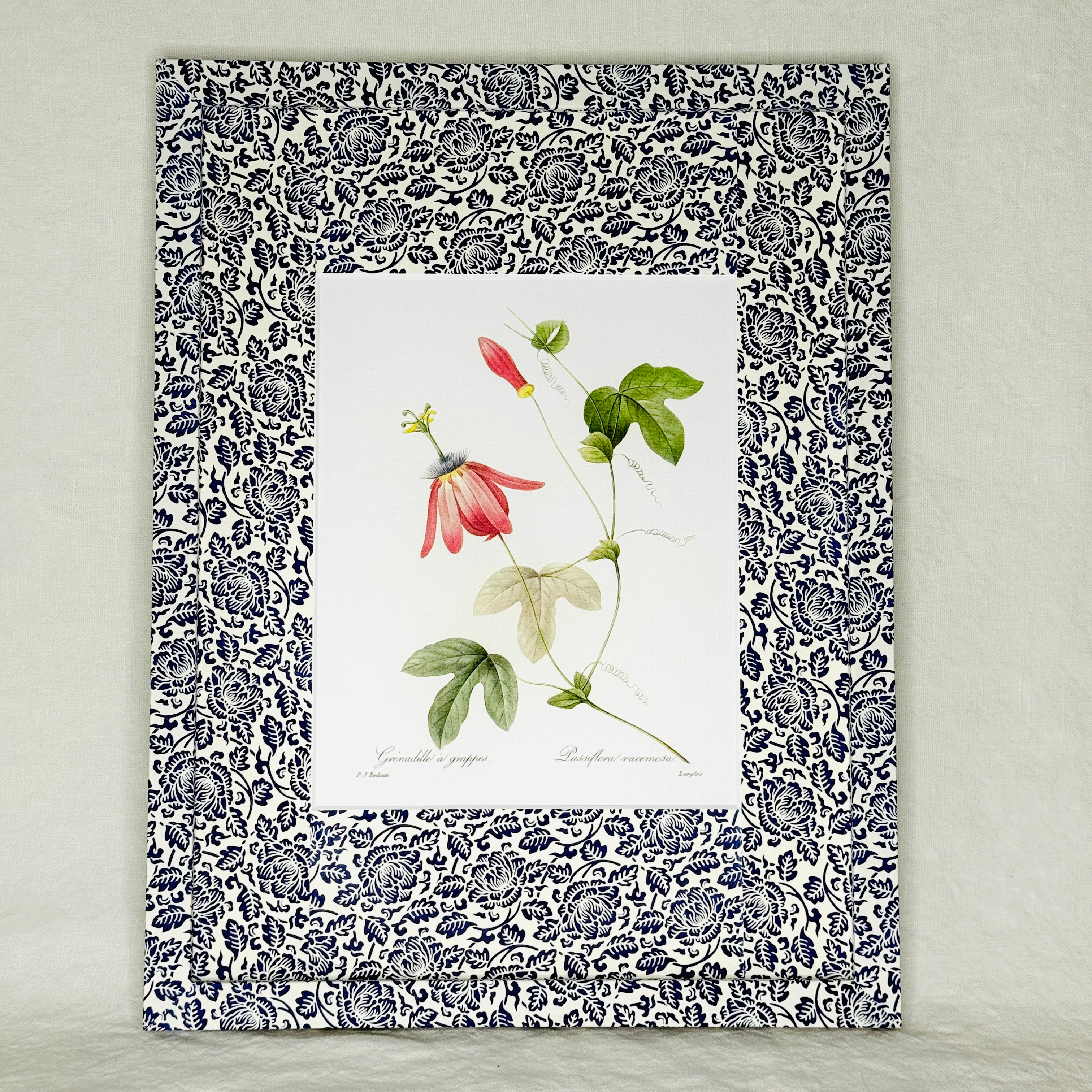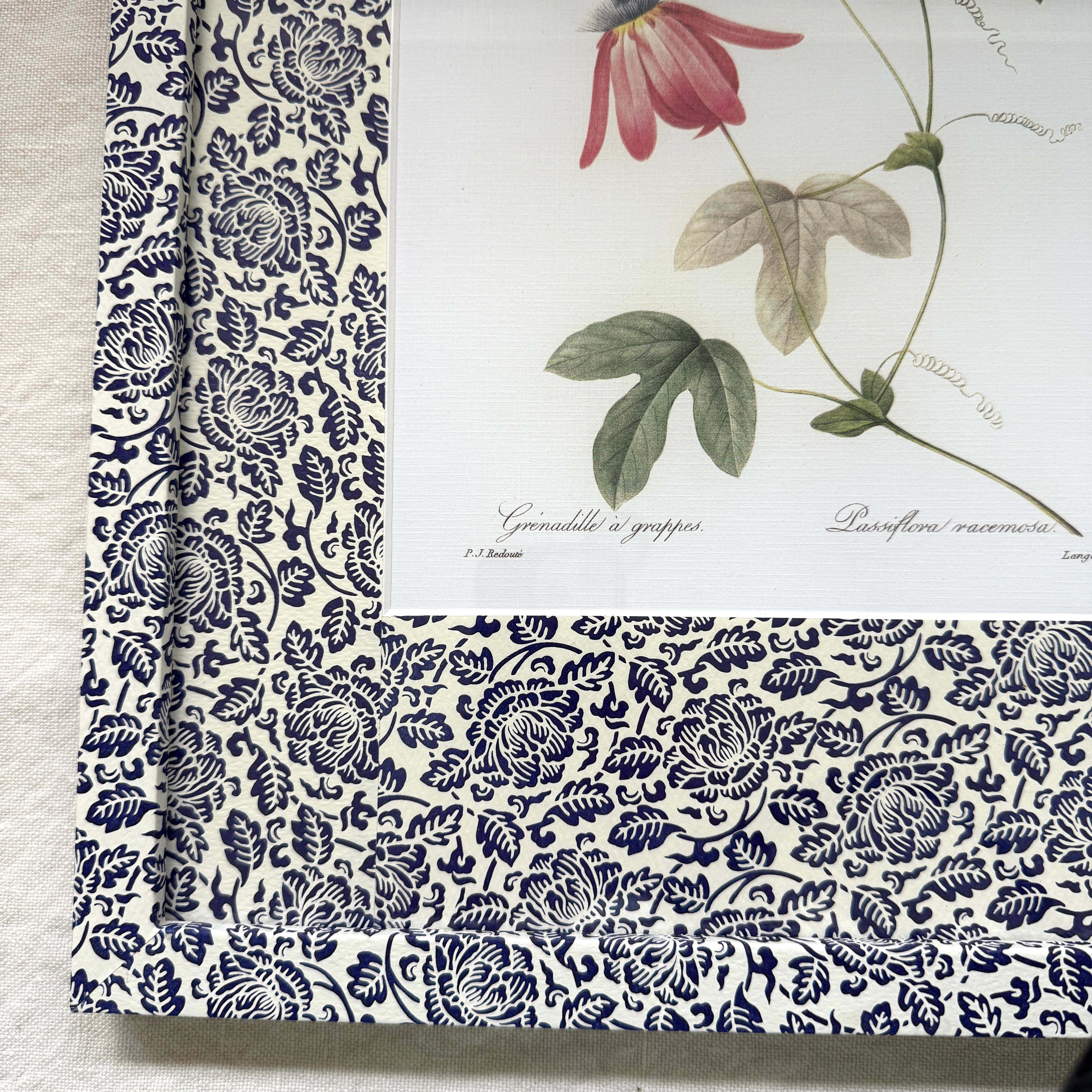 Sweet 12" x 16" hanging frame with digital botanical. The frame and mat are covered in from gorgeous Italian and British papers. Frame holds 12x16" print or photo with glass.
