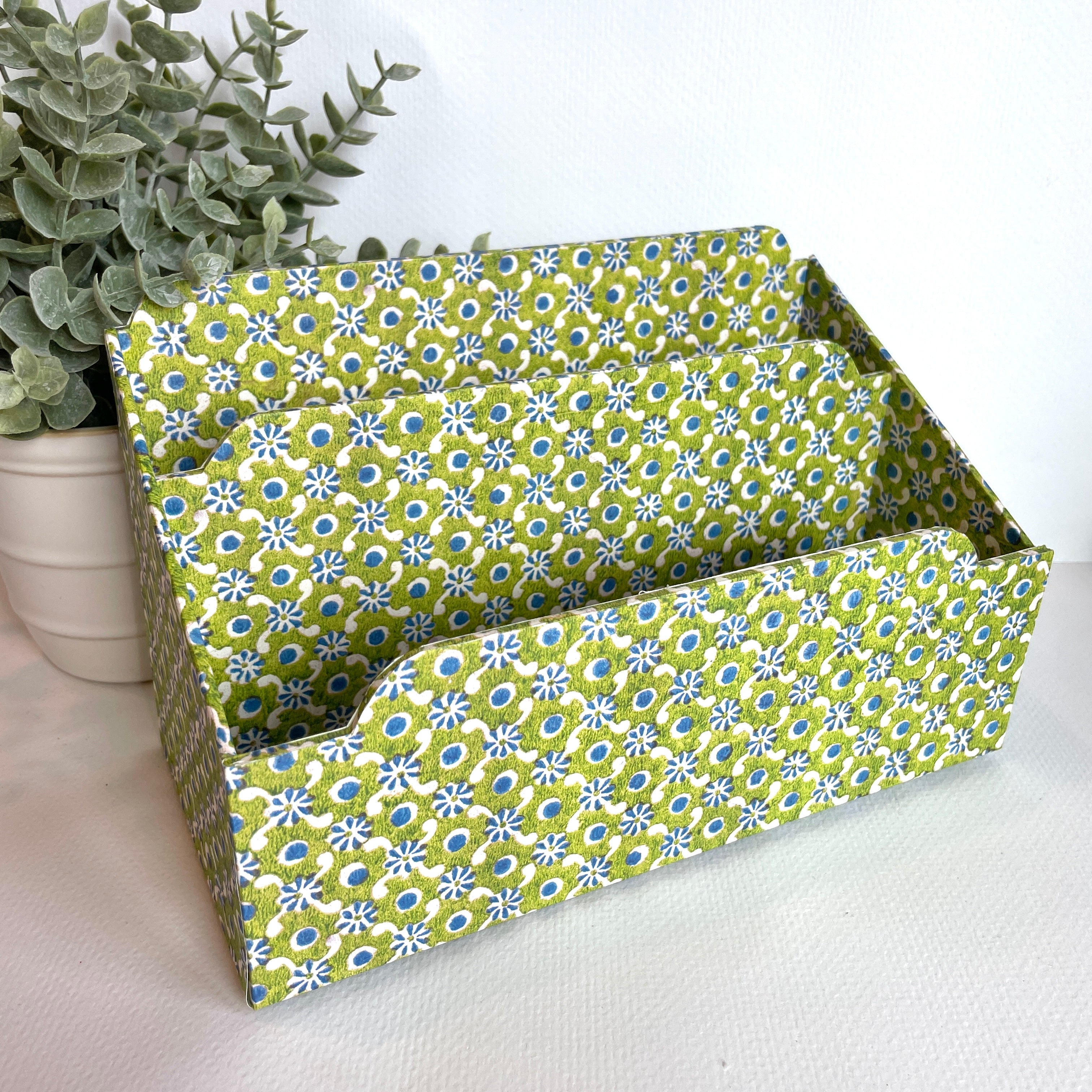 A pretty way to store special cards and notes on your desk.  The letterbox has 2 slots with gently curved dividers.  Each box is crafted completely by hand and wrapped in beautiful Italian paper.