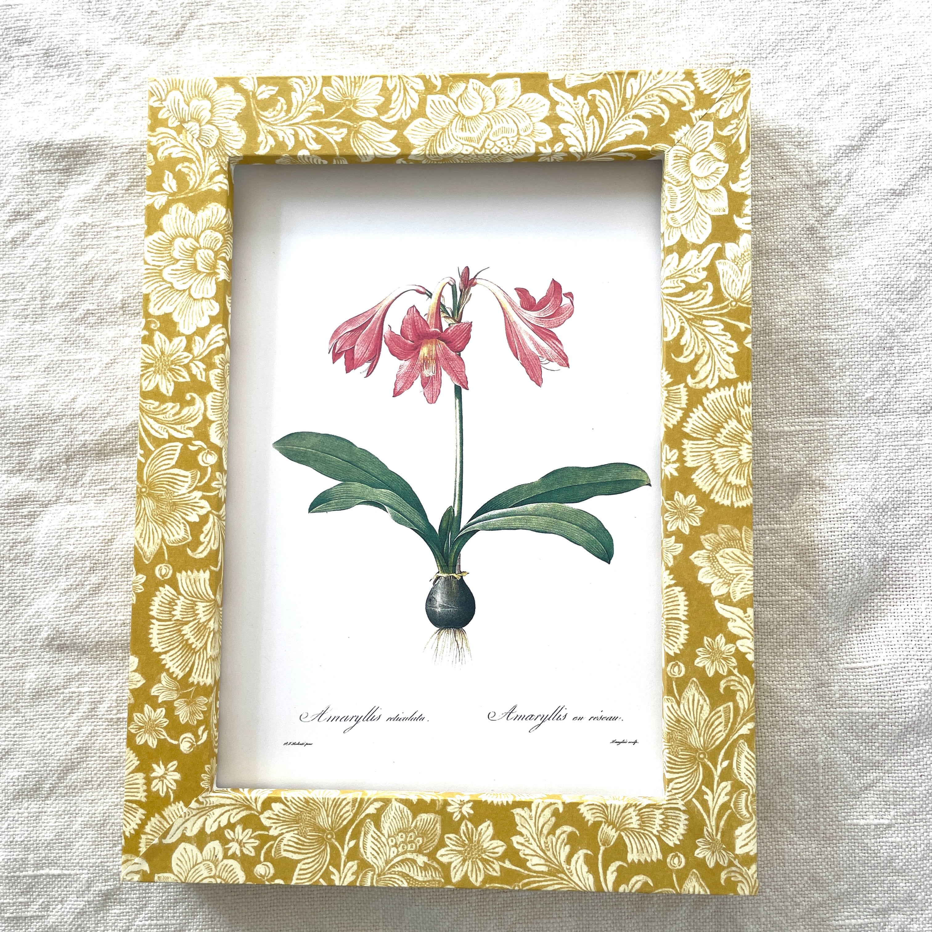 Sweet 5"x7" standing frame with digital botanical. Made completely by hand from gorgeous Italian and British papers.  Frame holds 5" x 7" print or photo with glass.