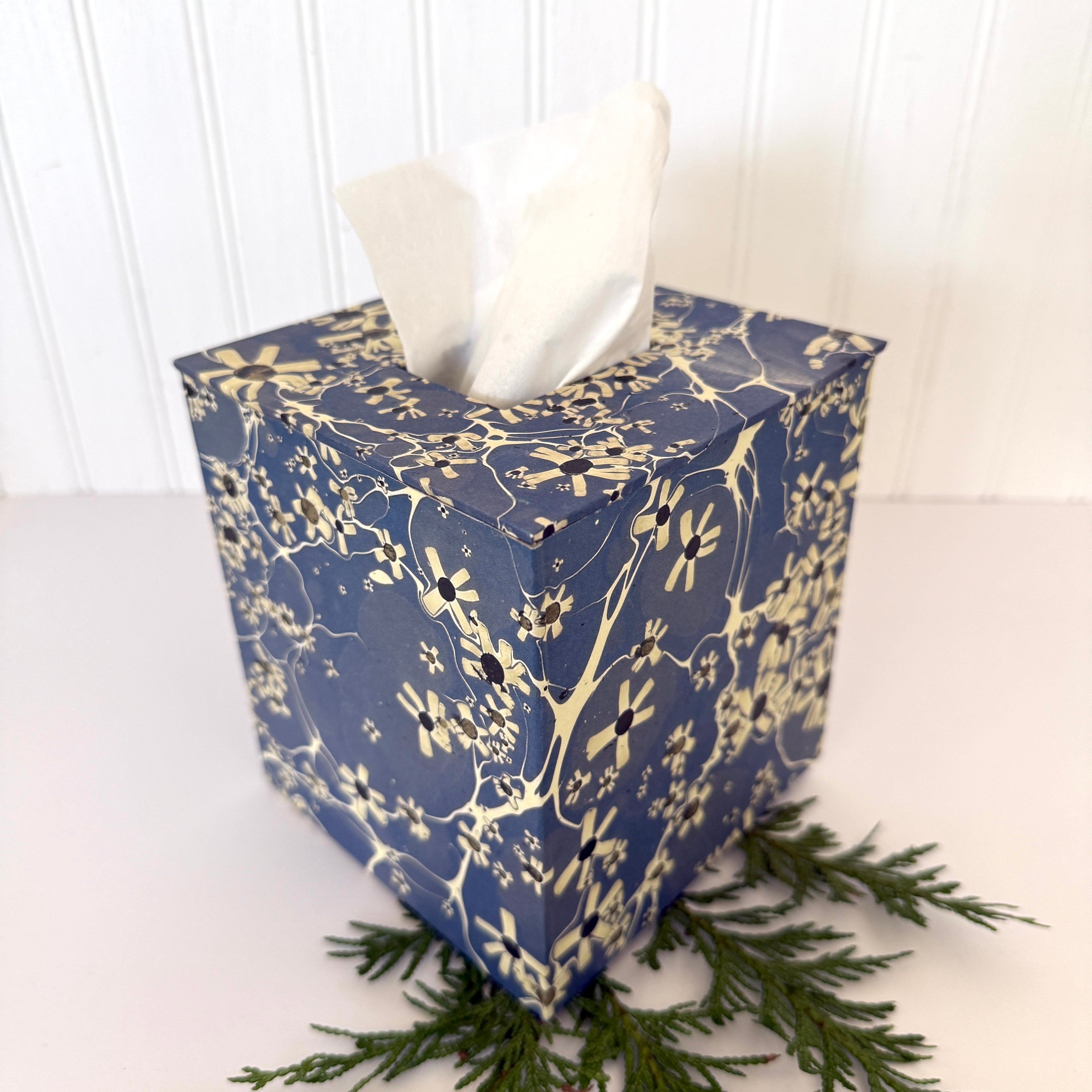 Square tissue box cover in patterned Italian paper. Sized to fit a standard cube tissue box. You may also customize this item with any paper you see on the website. Please reach out to the studio should you wish to do so.